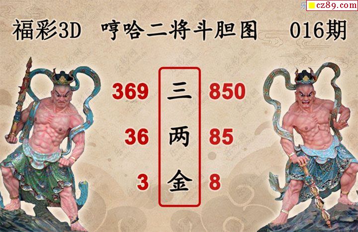 福彩3D2026016期 白鱼舟3D图谜哼哈二将斗胆图